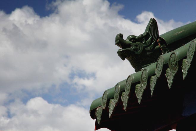 拉萨关帝庙大殿凌空的琉璃飞檐