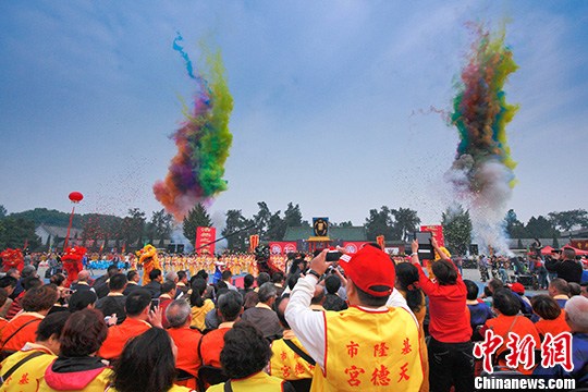 来自海内外的华人、数十家关帝庙、社会团体、众多知名企业家代表等400多人列队参拜关林,焚香许愿。