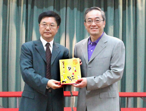 朱正明向澳门大学副校长程海东赠送《群书治要360》