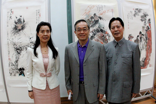 澳门大学副校长程海东与汪国新先生、郑桂兰女士在展览现场