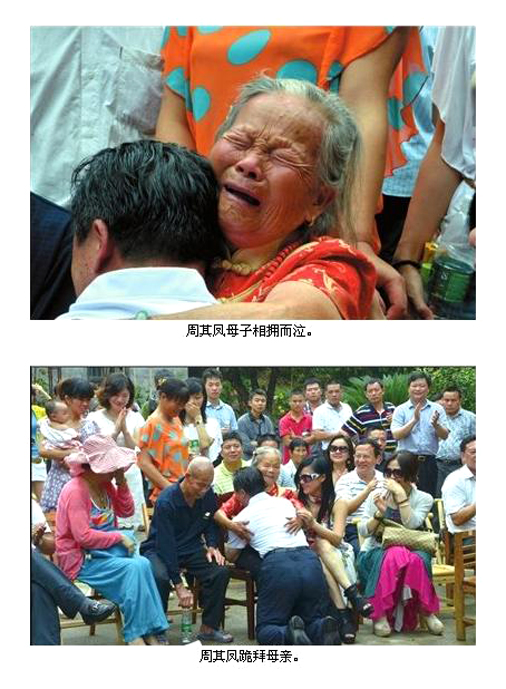 周其凤是13日悄悄回家的。村民们也是后来才知道。90大寿是人生一大喜事,13日,不少村民自发来到周家,为周母祝寿。“到了祝寿的时候,周其凤动情地跪在母亲面前,紧抱着母亲,母子两人抱头流泪。”周极端说,当时,很多村民看到这动情的一幕,也禁不住流下热泪。“给母亲祝完寿后,14日,周其凤便离开了家乡。”