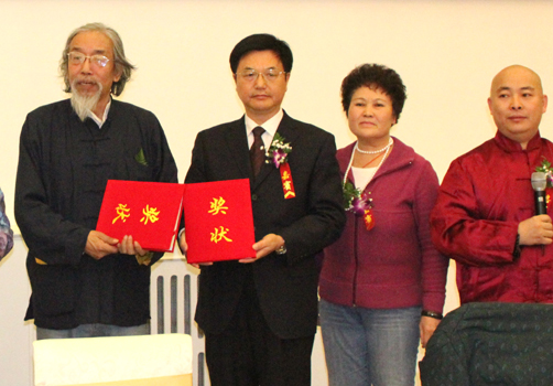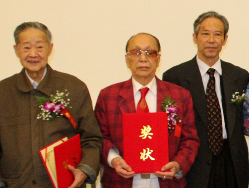 左起:获奖者罗哲文、关英才,颁奖嘉宾马自树