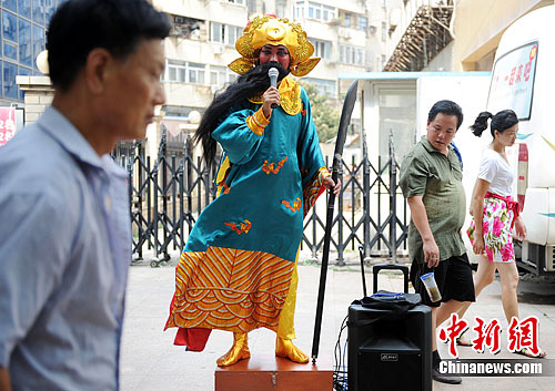 破产哥重振旗鼓 扮关公街头献唱