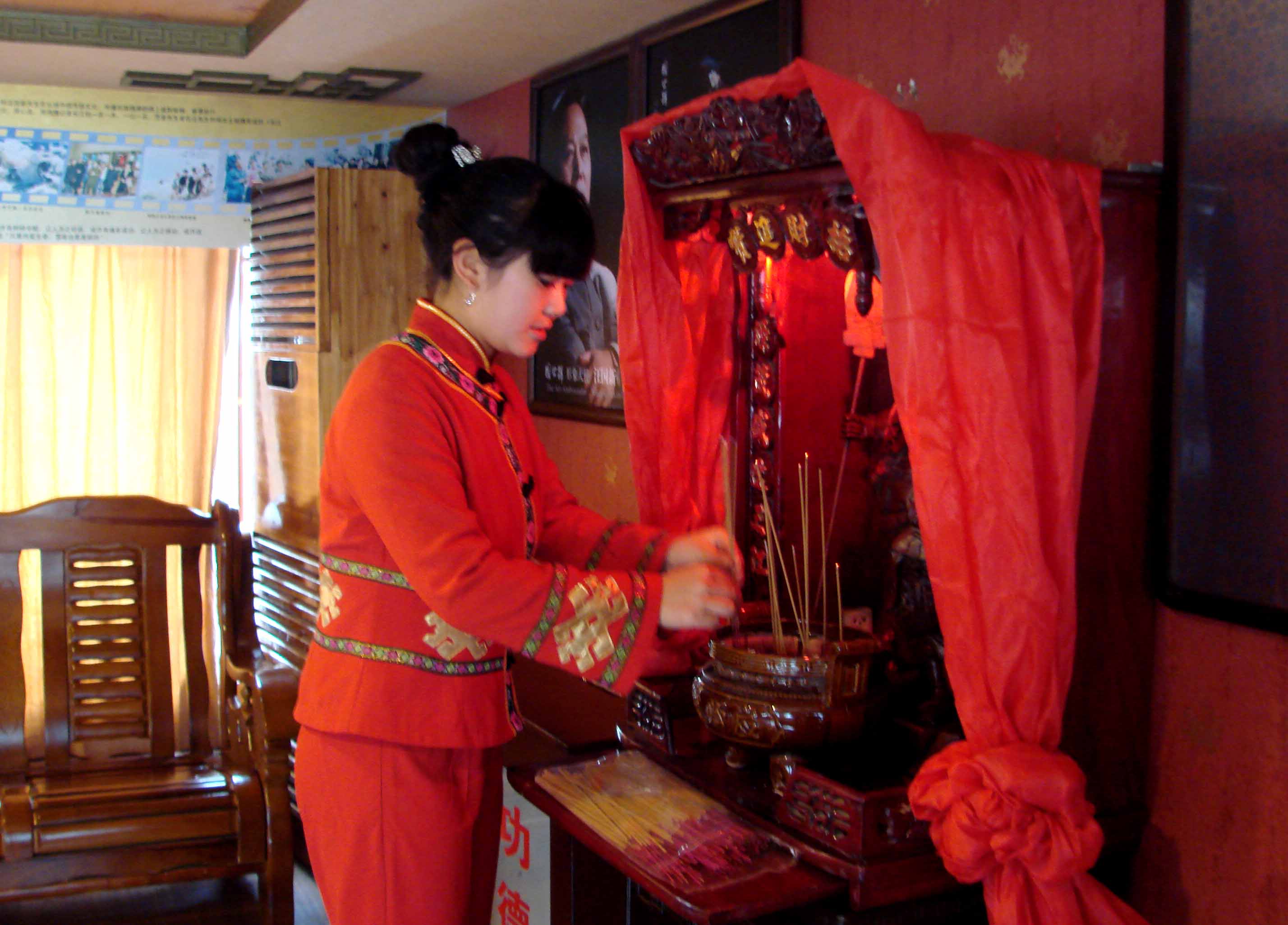 土家姑娘在关公号游轮为关帝敬香