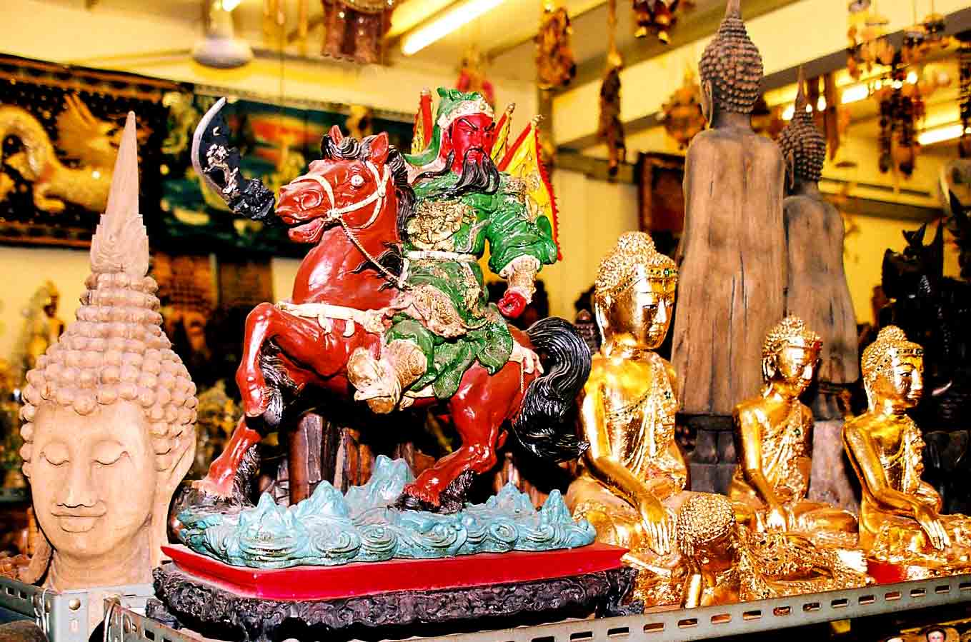 在芭提雅步行街的大小商店,随处可见泰国人精心制作的关公像。