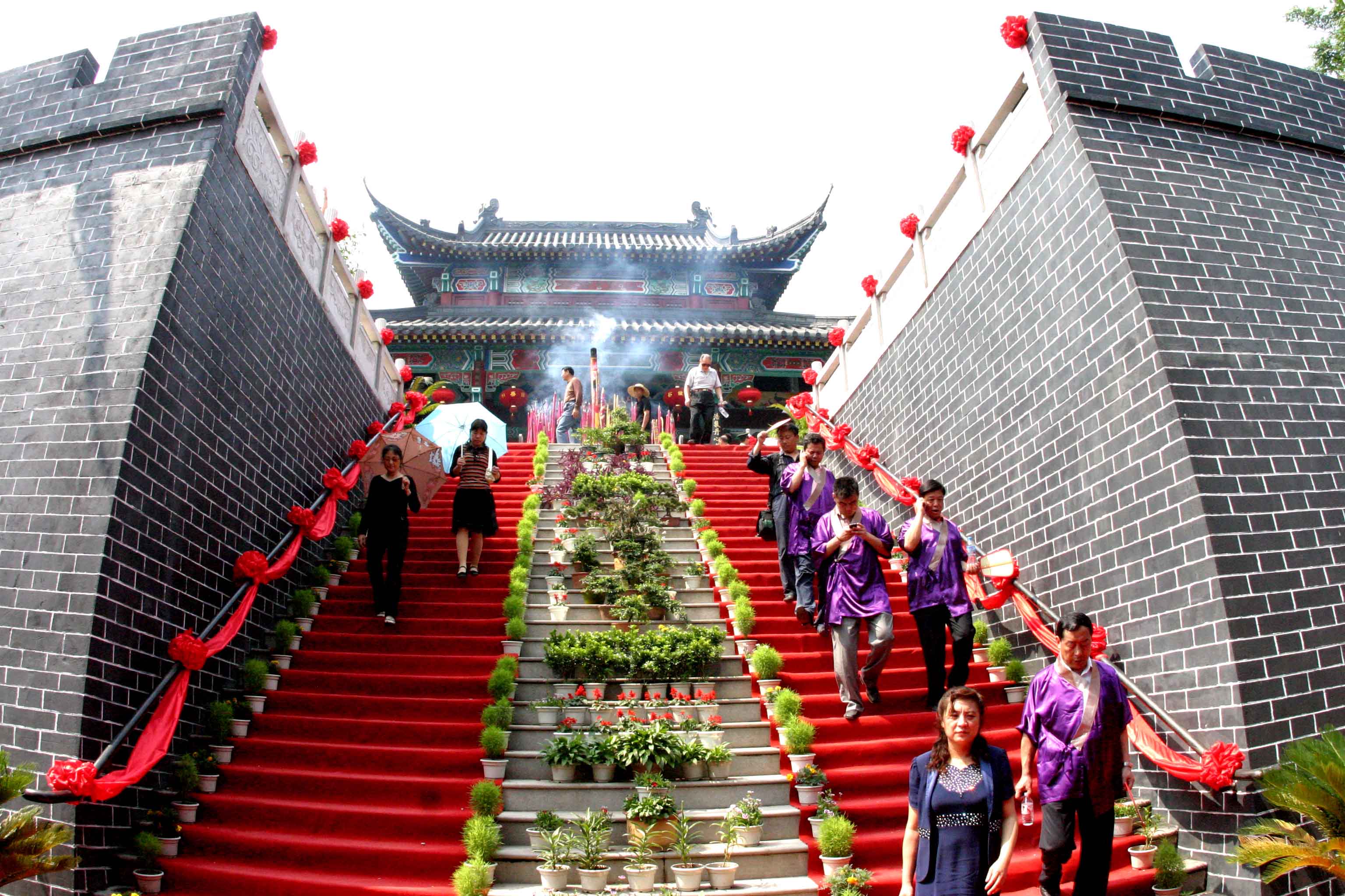 关羽祠供奉的关帝全家福,为中国大陆首创