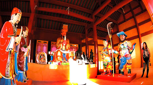 拉萨关帝庙正殿供奉的关帝、关平、周仓群雕(朱正明 摄影)