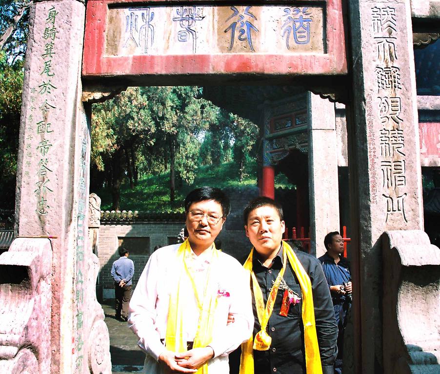 世界关公文化促进会秘书长朱正明先生(左)与吉林省关帝文化传播公司董事长冯绍杰先生在洛阳关林