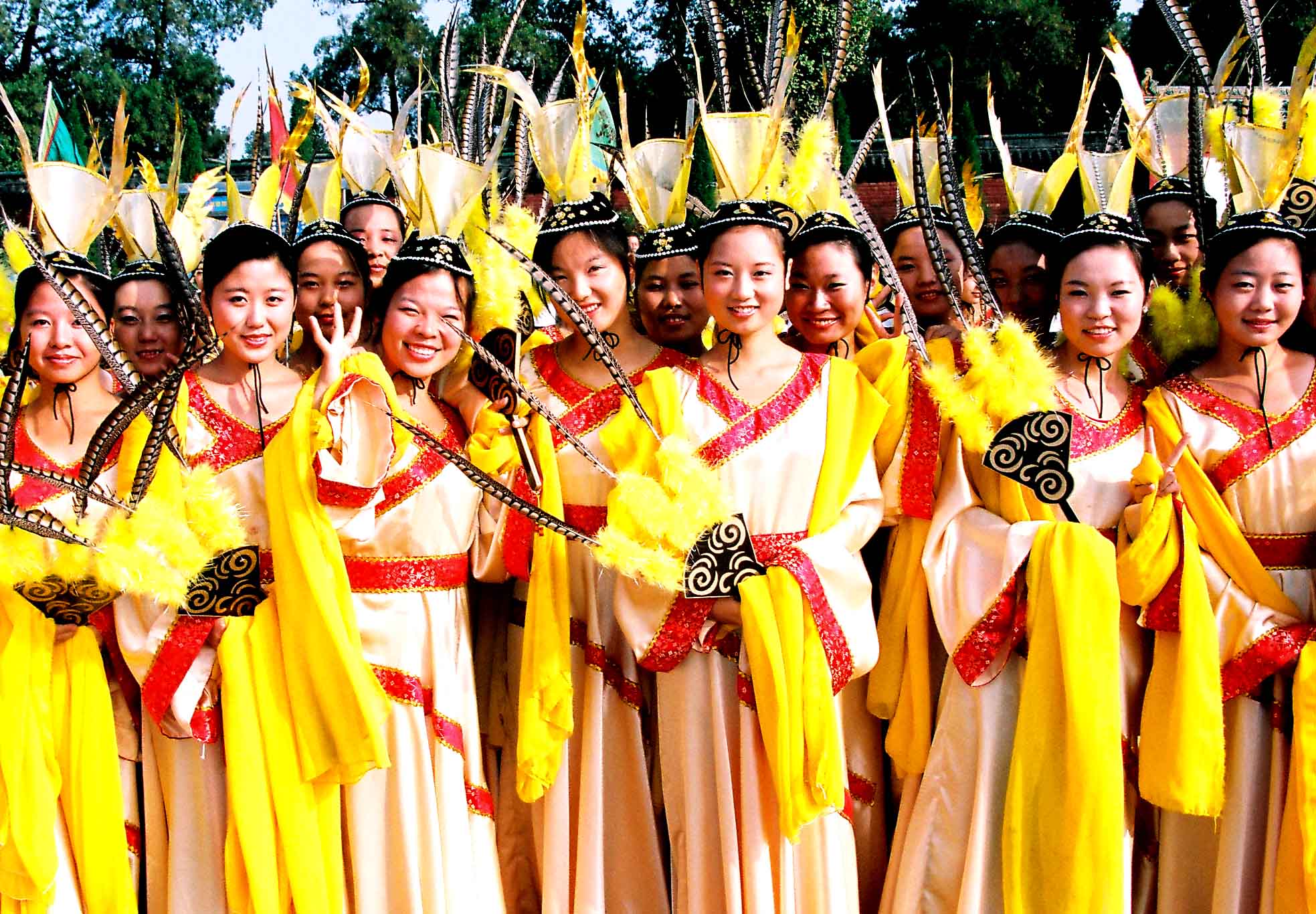 洛阳关林国际朝圣大典表演祭祀舞蹈《关林神韵》的洛阳“宫女”(朱正明 摄影)