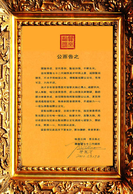不久,黄喜得组建了“世界关公协会联盟”,并规划了其宗旨任务: