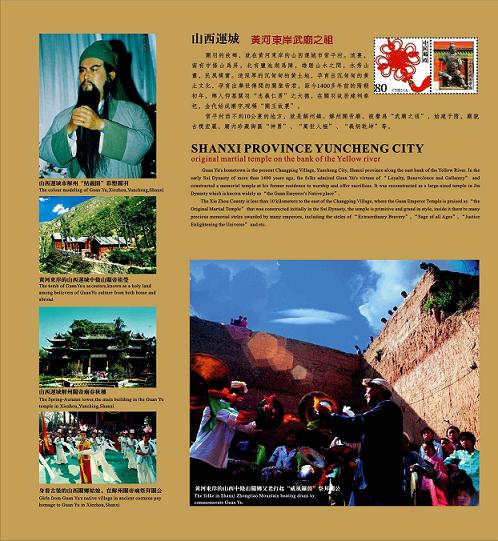 中国首次推出《关帝文化》珍藏邮册。16幅关帝圣像个性化邮票,经中国集邮总公司权威批准,在北京邮票厂印制。