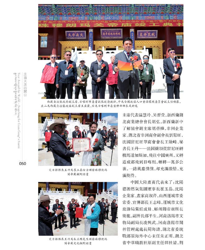 “今天,我将再次出发,继续我的寻访传承世界关帝文化之行。中国大陆,还要再去珠穆朗玛关帝金殿,仰望那些虔诚朝圣的藏汉民众,探寻他们心底的感人故事;还要去内蒙古多伦山西会馆,寻找独居塞外的山西客商们远古的梦幻;还要去秘鲁番禺会馆关帝殿,考察南美洲关帝文化风情;还要去印度孟买,感受印度洋畔华人的关帝深情;还要去尼泊尔,搜寻山国工匠们制作的精美关公,从喜马拉雅南坡仰望珠穆朗玛;如果机缘成熟,还将远赴南极、北极,把中华武圣护送到地球三极......