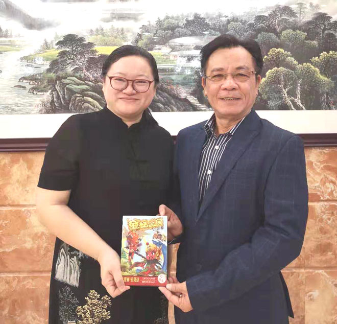 杨娜向澳门山西商会副会长陈炎平赠送关公文化动漫作品