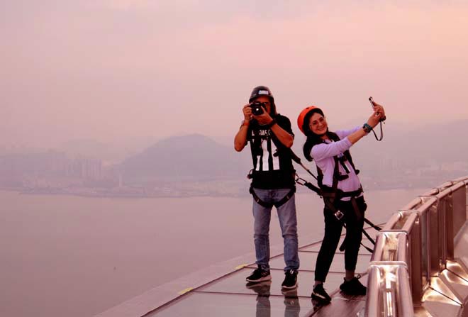 关公义工、马来西亚艺人彭照钧与妻子在“云上厦门”拍摄鹭岛风情