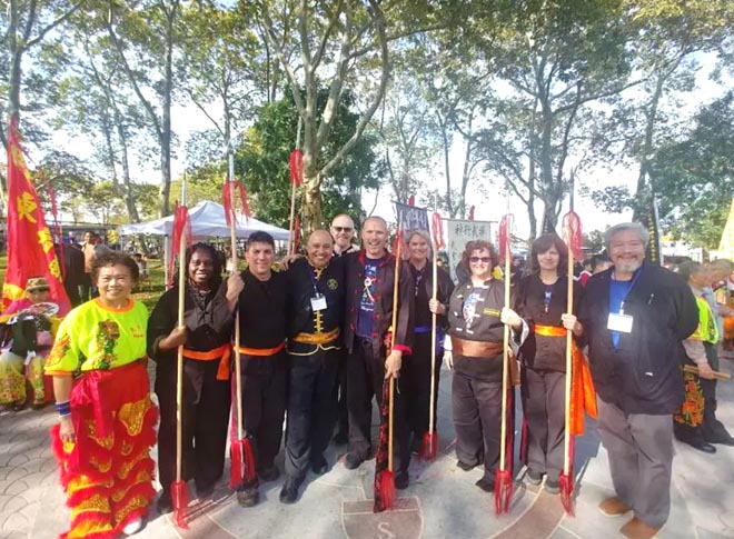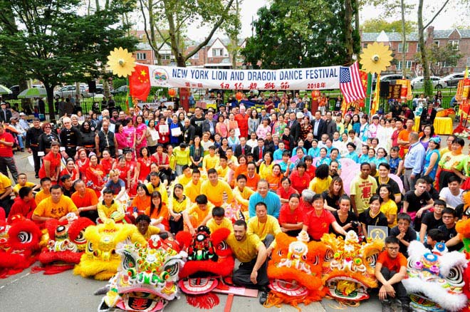 纽约灵应关帝庙主席李绍基介绍,纽约举办龙狮节,主要是配合一带一路,推动中华传统文化交流,推崇关公忠义仁勇文化。第二届龙狮节比去年首届规模翻倍,除了有美国亚裔文化交流总会醒狮队、纽约灵应关帝庙教育中心龙狮队等12支龙狮队,还有11支太极、舞蹈、中国功夫队伍加盟汇演,总计演出队伍多达23支,来自上州、法拉盛、布碌仑等纽约各地。