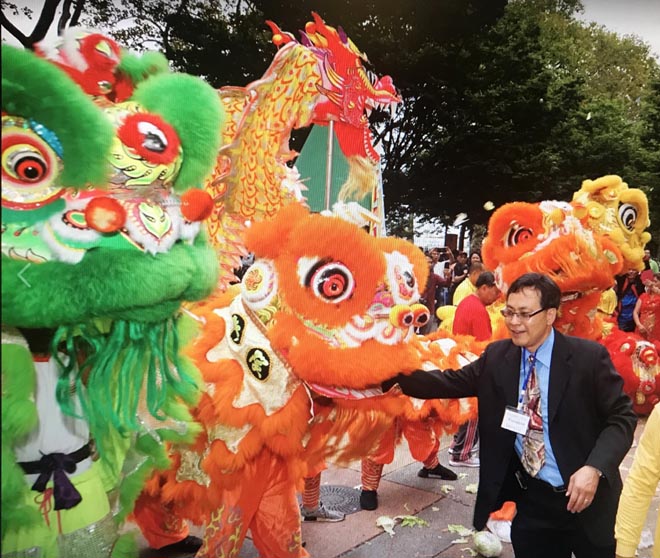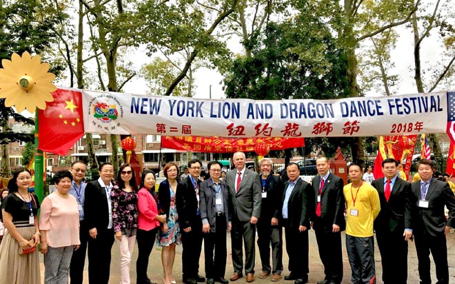 中国驻纽约总领馆侨务组领事董海荣和副领事程淼亲临龙狮节活动,向华人侨胞送上问候。董海荣领事指出,龙舞、狮舞都是中华文化中不可或缺的宝贵资源,很高兴看到移居纽约的广大华人侨胞把中国文化传统带到这边来,在当地生根发芽,发扬光大。此外,当天也有太极、武术团体参加活动,成为社区盛事,总领馆对此也是非常肯定,乐见华人侨胞传播中华文化。董海荣领事说,“国之交,在于民相亲”,两国人民之间的友好文化交流,就是中美人民友谊的基础,这种深厚的民间基础,值得我们加倍呵护珍惜,也将为未来中美关系的友好发展提供非常有利的条件。”