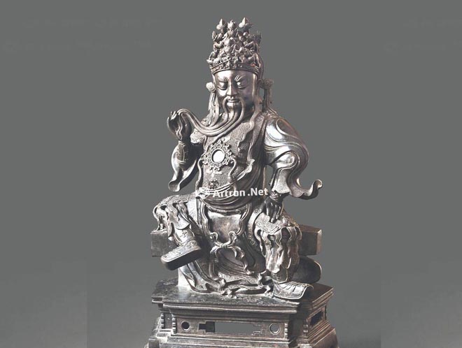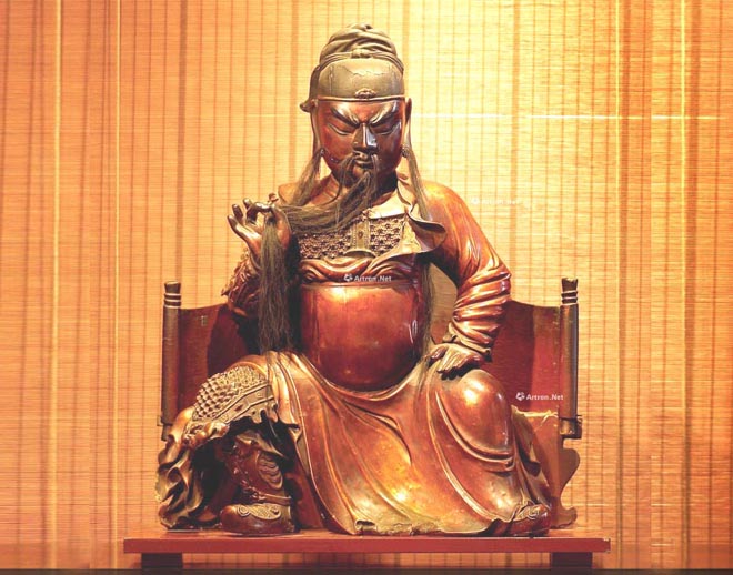 2 ◎ 明铜铸关公座像 高99cm,2017年6月中贸圣佳国际拍卖,成交345万人民币。