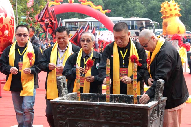 马来西亚、新加坡、越南关公文化参访团孙艪华团长、李凯翔拿督、朱贵财主席、黄有义理事长、谢立明会长等祭拜关公