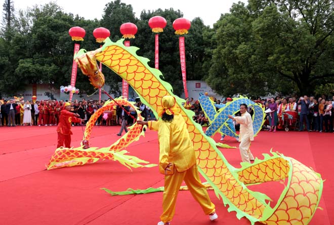 当天关陵庙会与祭祀大典同步举行,当地民众、民间社团、文艺爱好者还在活动现场开展了舞龙大赛、民风民俗文化活动展演、当阳市非物质文化遗产成果图片展示等主题活动,为现场群众献上了一顿丰盛的本土传统文化大餐。