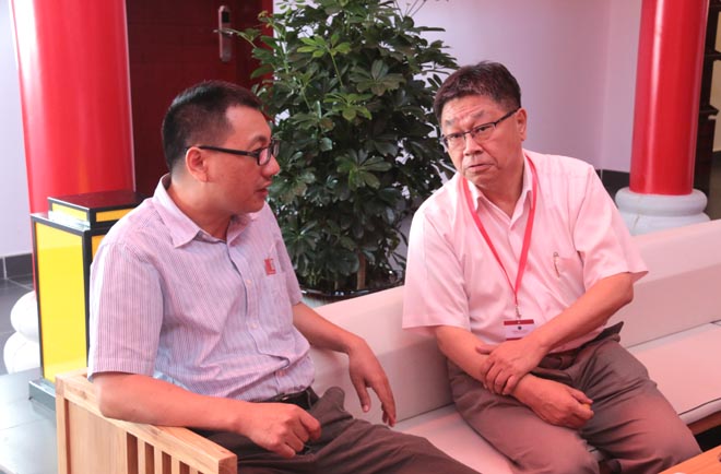 真理大学人文学院张家麟教授(右)与大陆学者交流