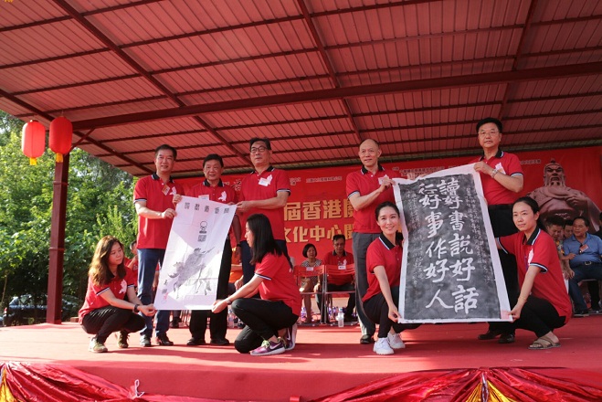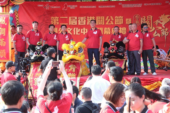 这天,3000余名港澳及大陆各界人士,为了弘扬中华关公文化的共同目标,汇聚在这里。开幕式前,嘉宾起立高唱中华人民共和国国歌。山西省运城市委常委、政法委书记邓雁平,香港大明集团董事局主席董明光,香港山西商会会长胡晓明,元朗十八乡主席梁福元等先后致词。香港商界大佬、香港山西商会荣誉会长霍震寰,港澳及大陆众嘉宾为舞狮点睛。香港山西商会会长胡晓明举杯祝福:“祝伟大的祖国繁荣昌盛,祝香港永远繁荣稳定,祝关公文化在香港代代相传。”