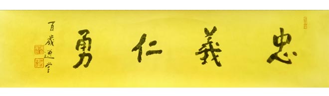 就在3个月前,经香港大明集团董明光主席联络,101岁的饶宗颐大师,欣然为文化学者朱正明《走遍天涯访关公》题写“忠义仁勇”,这也许是饶宗颐大师留下的最后墨宝。这幅珍贵墨宝,去年11月在澳门国际关公文化论坛首次展示,并在今年元月中旬台湾宜兰礁溪忠义大楼《世界关帝文化风情展览》展出。据悉,这是饶宗颐先生为世界关帝文化题写的唯一墨宝。
