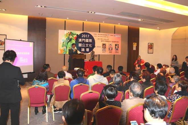 主办方葛万金理事长表示,澳门大学国际关公文化论坛,从2012年开办首届,已历经四届,曾邀请大陆关公文化学者胡小伟、朱正明、汪国新、梅红、郑桂兰,越南华裔李莹蔚及港澳台多位专家学者,共同传承中华关帝文化精神。2015年,澳门组建了国际关公文化协会,将与海内外关公文化社团一道,以澳门为中西方文化连接的纽带,为传播中华关公文化做出新奉献。