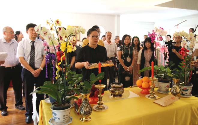 夏威夷华文作家协会叶芳小姐说:“今天,中国大陆五大关帝庙香灰汇入夏威夷关帝香炉,这是夏威夷华侨华人早已期盼的喜庆日子!”