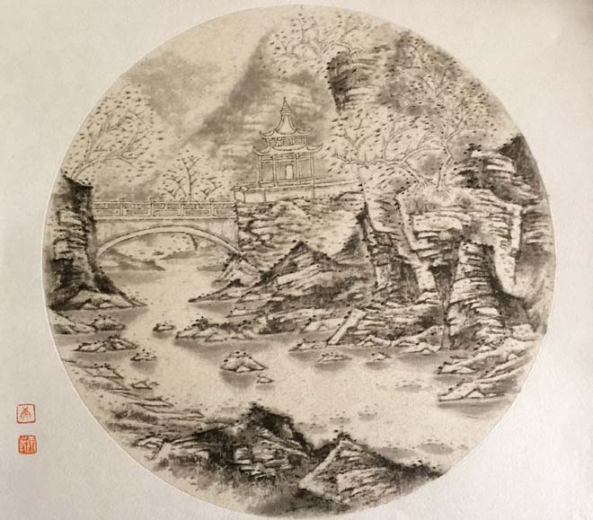 康峰写生山水《千年故道回马坡》,艺术再现了当年关公从麦城入蜀,在临沮遇吴军偷袭之处的险峻山水