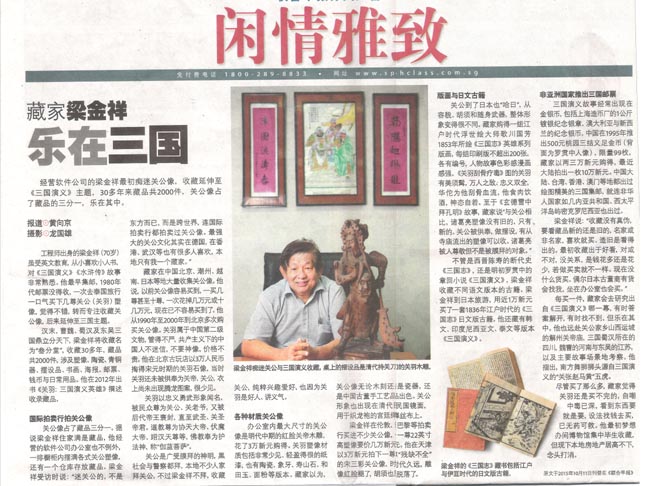 新加坡《联合早报》刊登梁金祥的收藏故事