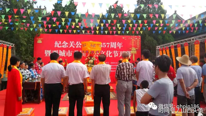 7月17日),晋城首届关公文化节在晋城府城隆重举行。活动当天,百家企业参加大典,旨在以关公精神推动企业“诚信经营、遵守诺言”的道德规范,推动全社会形成以诚信为基础的良好公民道德风尚。活动期间,有民间文艺节目表演,宣誓,结义仪式,“关老爷巡城赐福”等精彩项目。