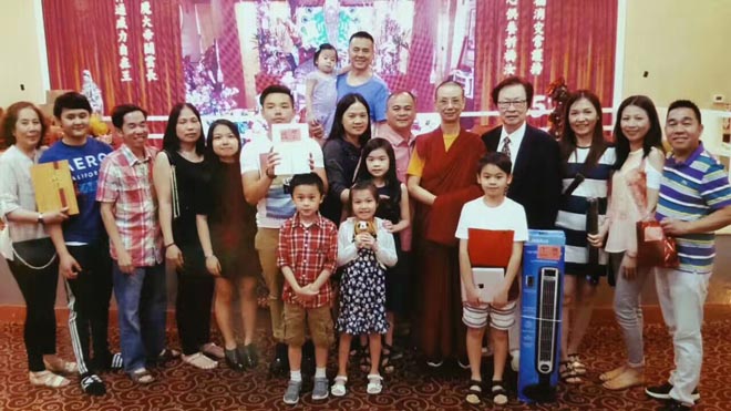 7月17日夜,马来西亚新山市淡杯第一花园关圣坛,隆重举办关圣帝君宝诞千秋平安晚宴,马来西亚关老爷协会苏国贤会长、孙橹桦主任等及千余位信众出席晚宴。