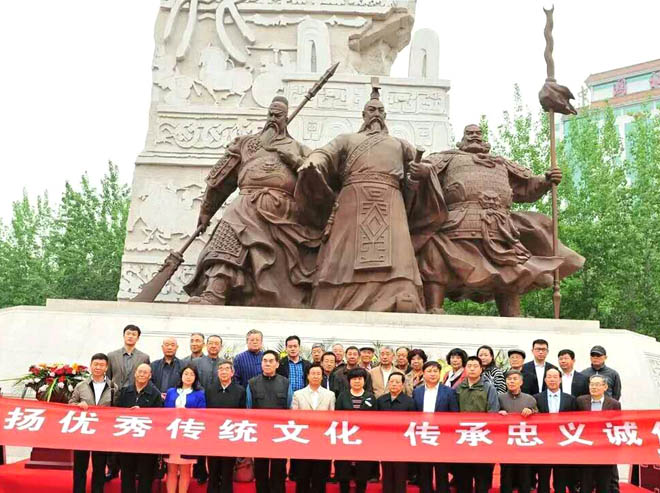 世界关公文化网消息:4月19日,农历三月二十三日,相传是刘关张1834年前千古一拜大义结盟的日子。保定刘关张三义文化研究会、中翔房地产发起,保定400多名大学师生、机关干部、企业家和各界人士,汇聚保定市刘关张忠义千秋铜雕塑群广场,缅怀先贤,传承中华忠义诚信精神。