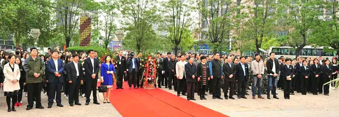 仪式最后,保定各界干部群众,向刘关张铜雕群像献上了艳丽的鲜花。