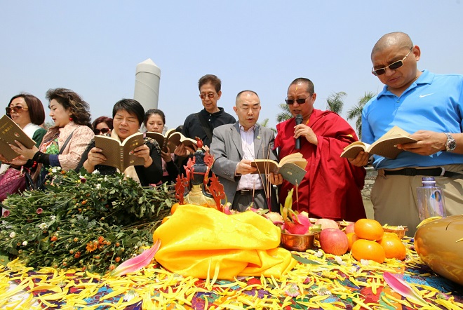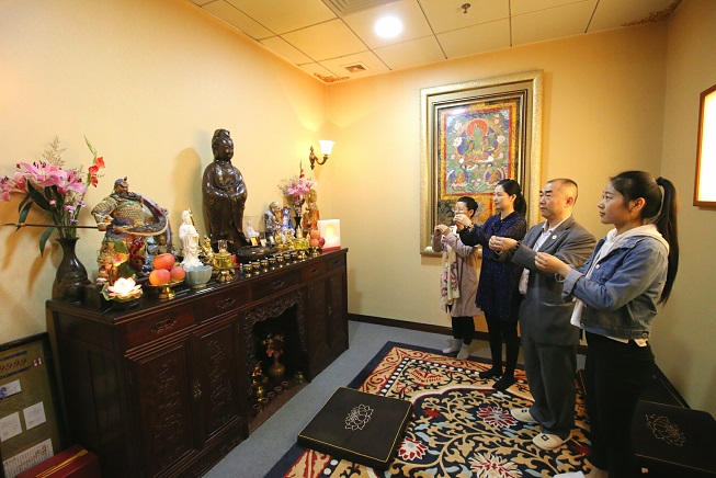 纽约关帝庙主席冯德鑫、堪布昂嗄仁波切带领信众诵经