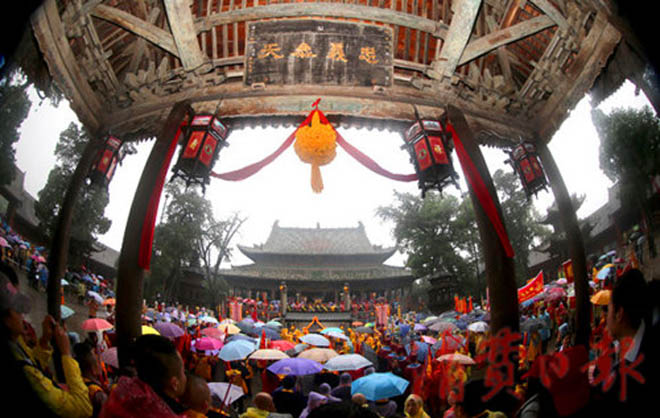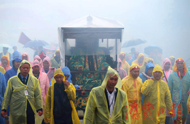 海峡两岸2000余民众在山西运城解州祭拜关帝冒雨巡游