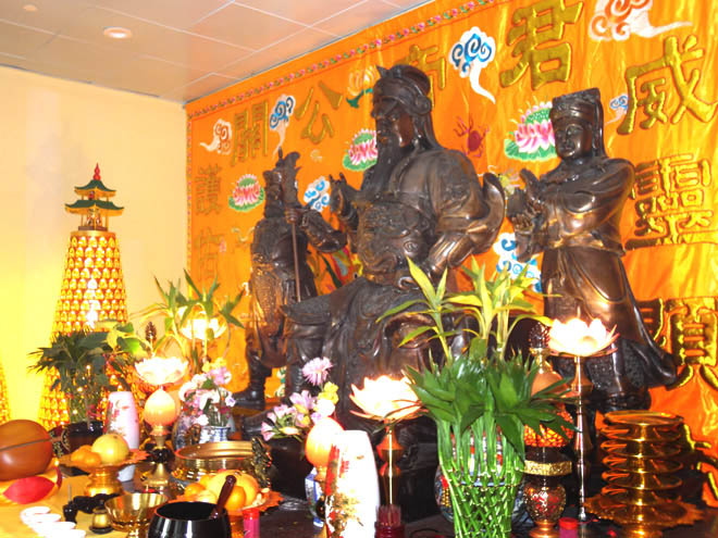 世界关公文化网消息:美国纽约灵应庙落成暨关帝圣像、观音佛像开光盛典,于10月中旬在纽约布录仑8大道隆重举行。殿顶之上,迎风飘扬着美国国旗和中国五星红旗。美国纽约法雨精舍住持品道大师、华埠西禅寺元雄大师、中华佛教会明通大师、法缘寺宏胜大师、般若禅寺起愿大师等10多位法师为佛像开光,社会各界人士300多人观摩参访。