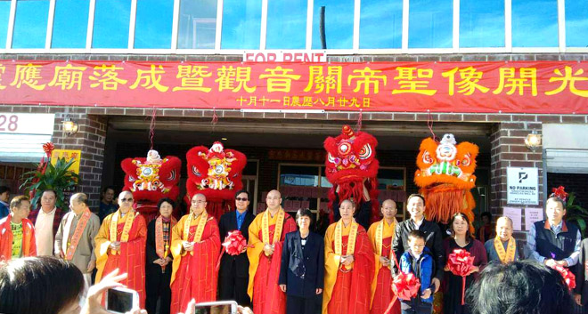 纽约灵应庙2014年峻工,2015年迎请千手千眼观世音菩萨金像、关帝圣君青铜像。本次佛像开光后,再举办三天佛事活动,祈愿世界和平,国家繁荣进步,人民幸福安康。
