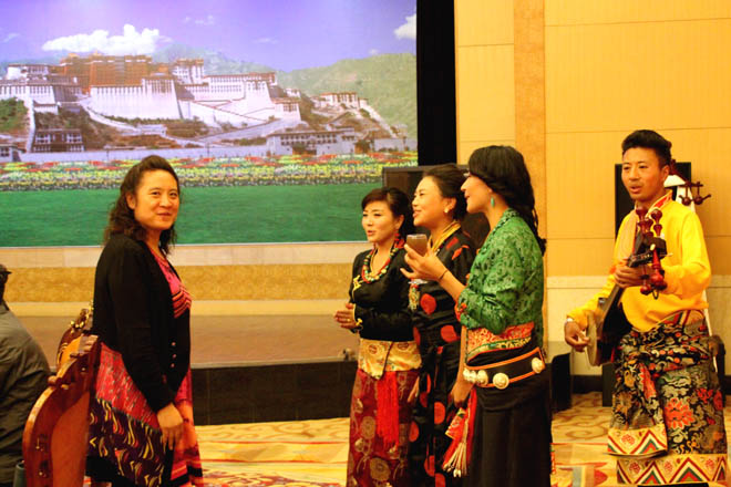 在西藏自治区政府,藏族歌手特为崔玉晶女士演唱雪域高原的歌谣
