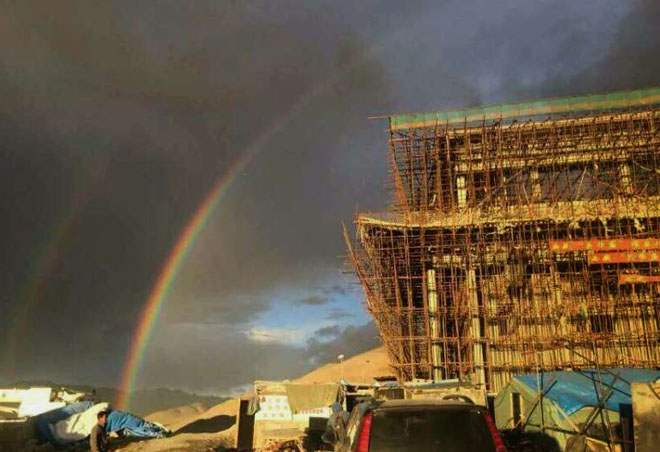8月8日,世界最高的珠穆朗玛关帝庙大殿顶层封沿。就在此时,绚丽浓艳的彩虹从雪山之巅升起,吉祥无限,壮观无比!沈阳德源集团崔玉晶董事长当天将这组图片传到世界关公文化网,令大家即感动又震撼。