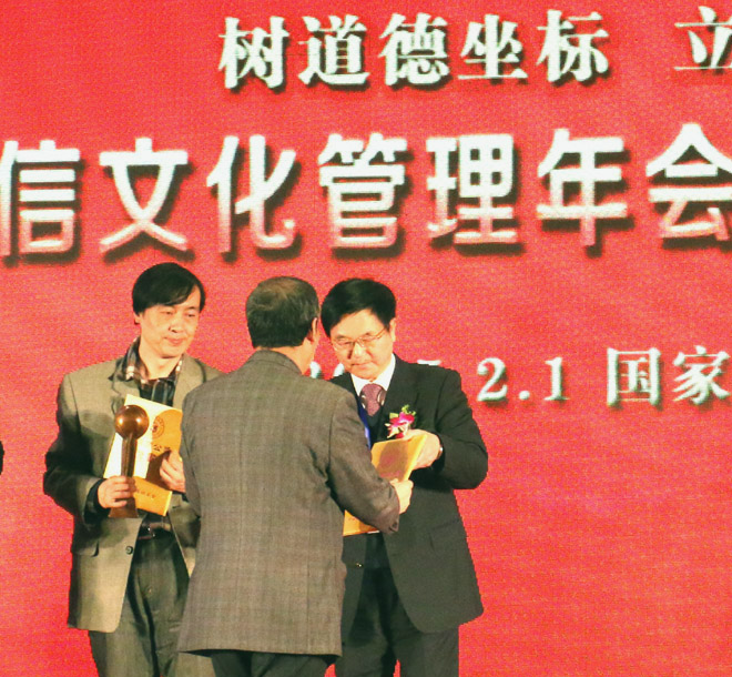 组委会的颁奖词是:“31年来,他以传承关帝文化为己任,走遍世界各地,寻访关公文化,11次进藏,7次赴非洲,行程48万多公里,拍摄了万余幅珍贵图片;出关公画册,办关帝展览,积极推动世界最高的珠穆朗玛关帝庙重建。正能量,为明天!”